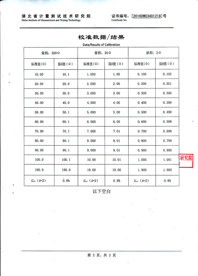 | 測試范圍 | 0—199.99mΩ |