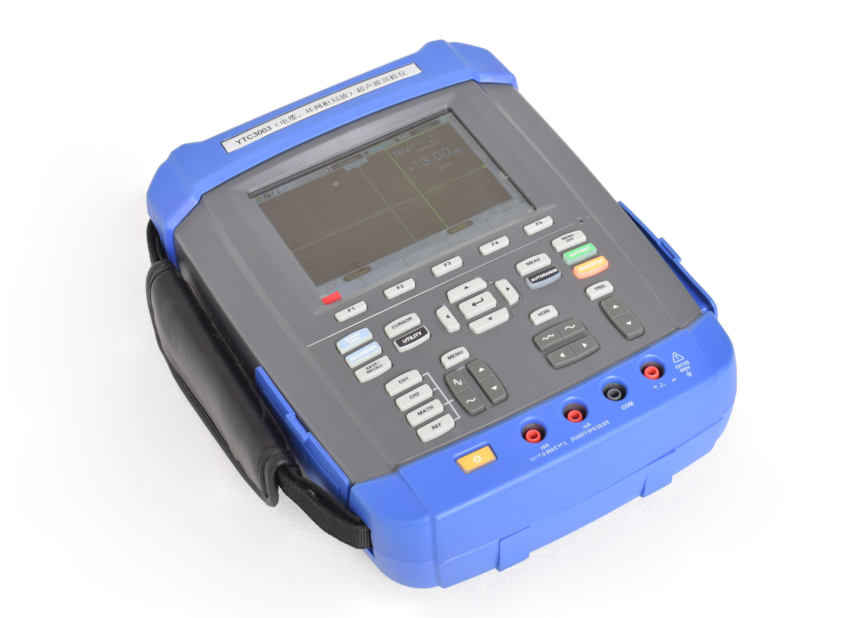 打開主機,點擊選擇 CH1,將當前通道選擇到通道 1 上,單擊“MENU”菜單鍵,在菜單欄按 F1鍵將“放電檢測”選擇為 TEV,按 F2 鍵設置是否“輸出電壓”及“單位”。使用復合式 TEV 傳感器進行檢測時需要輸出電壓。